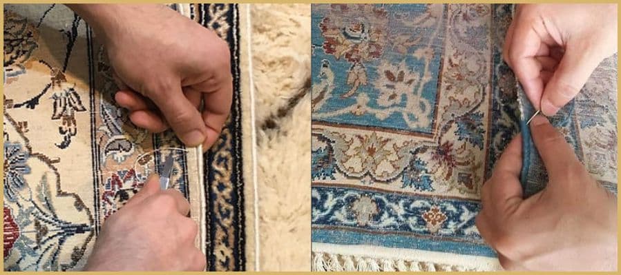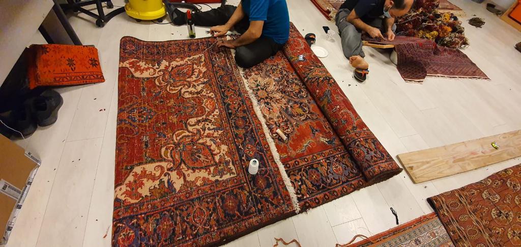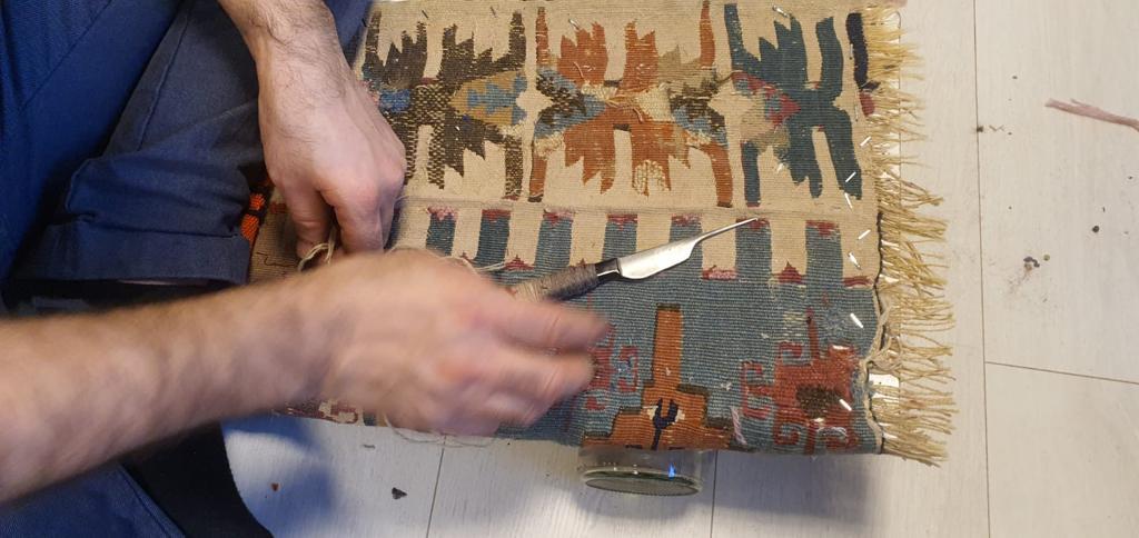 Les franges usées ou manquantes sont réparées ou recréées à la main pour protéger la structure et redonner au tapis son élégance d’origine.